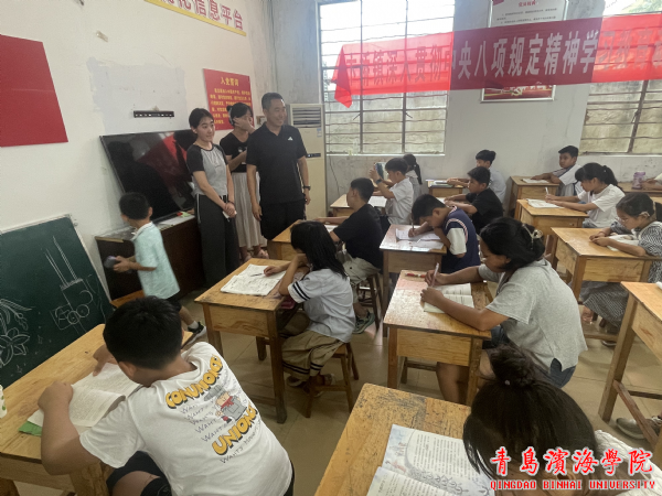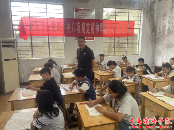 十位来自青岛滨海学院建筑工程学院的大学生志愿者组成了教师团队,他们不仅义务为全村50多个孩子辅导不同学科的暑期作业,还发挥各自特长,以多种课堂方式,让乡村儿童学习到更多知识,得到更多陪伴。