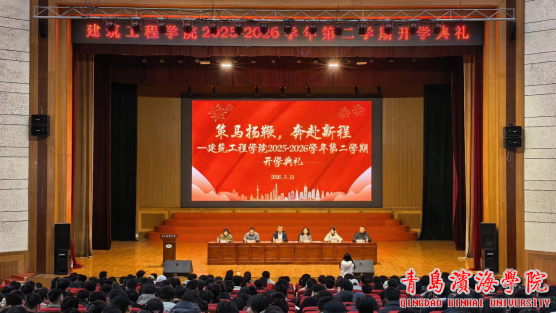 为凝聚师生力量、明确新学期目标,2026年3月11日下午,建筑工程学院2025-2026学年第二学期开学典礼在学校礼堂隆重举行。此次典礼由建筑工程学院院长助理张玺彦主持,院长荀志远、副院长李红梅、院长助理范坤坤、教学干事韦妍、学生干事孙泽峰及全体师生参加。